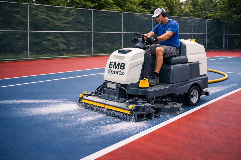 Nos interventions comprennent le nettoyage technique, le décrassage en profondeur, le contrôle des zones d’usure, la reprise localisée de surface et la remise en conformité des tracés si nécessaire. Une maintenance bien planifiée permet de préserver les performances sportives, d’éviter des dégradations prématurées et de réduire les coûts de rénovation à long terme.